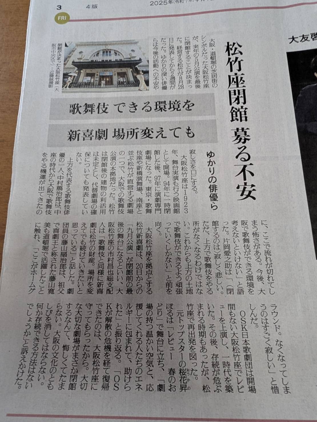 🌟読売新聞にコメントを掲載頂きました。 かつて日本のニューヨークと呼ばれました道頓堀✨ その歴史を受け継がれます 大阪松竹座。 愛と夢が永遠に奏でられますように。 |